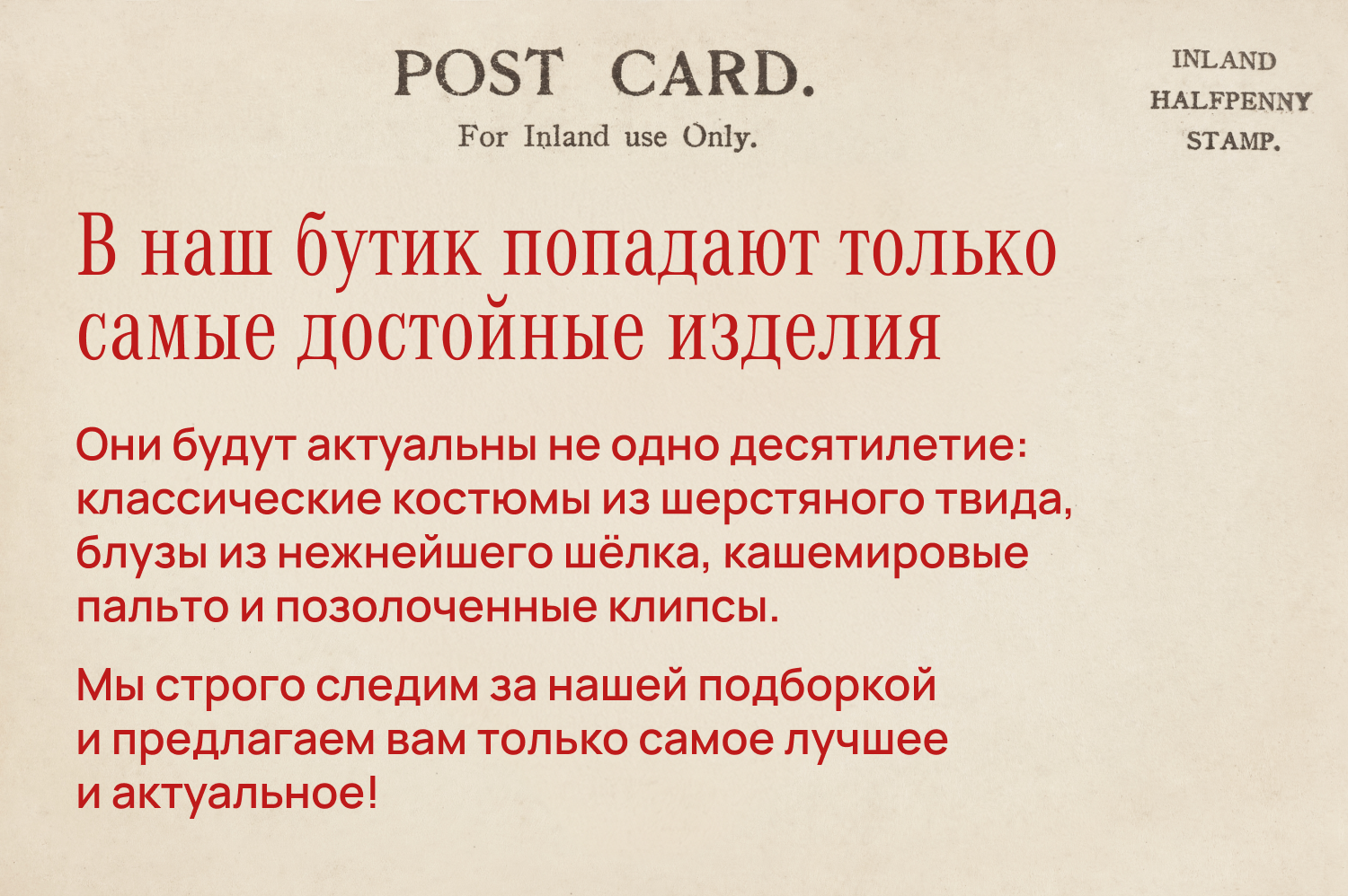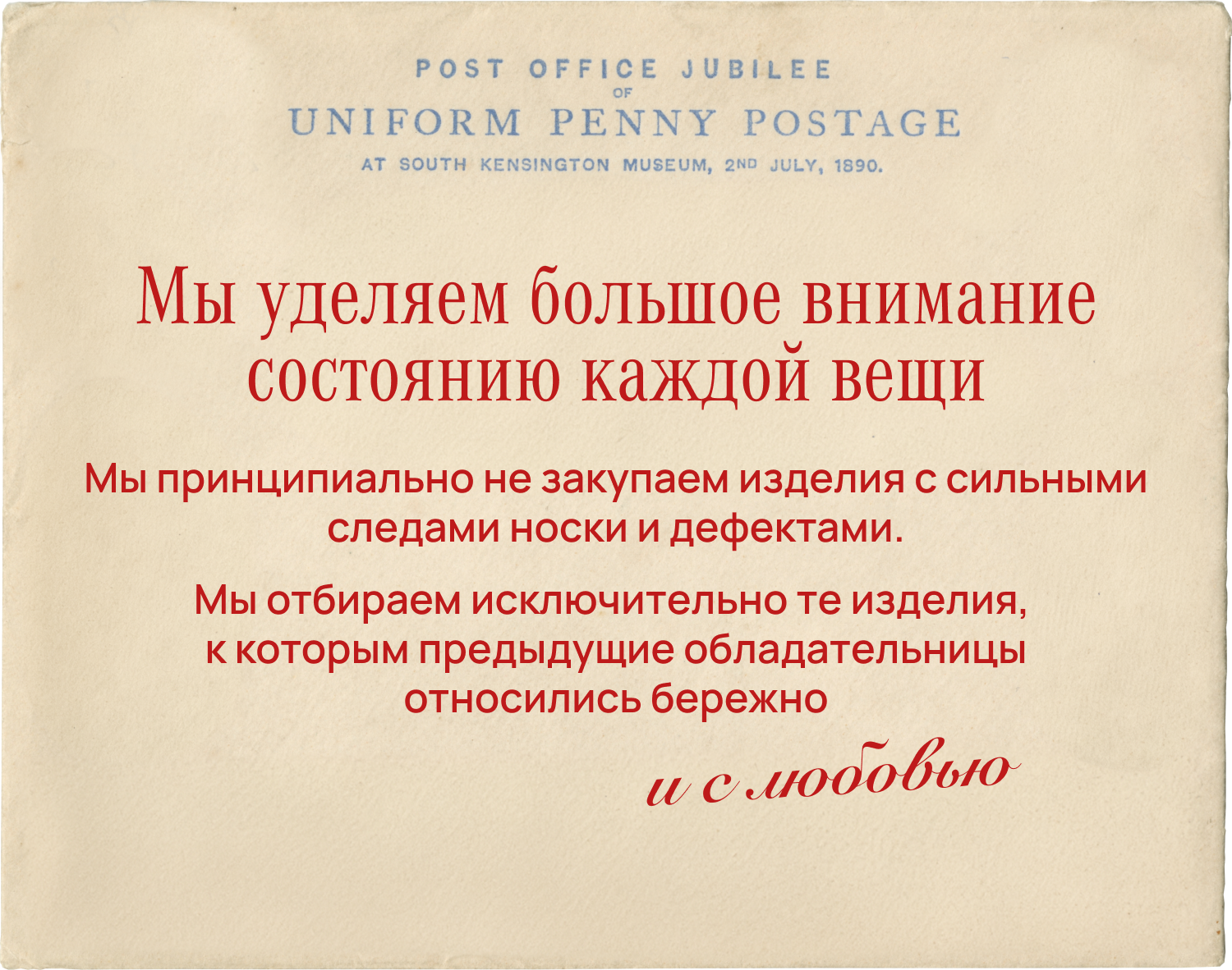 Мы внимательно относимся к качеству нашей селекции, стараясь приобретать исключительно вещи в новом или отличном состоянии.